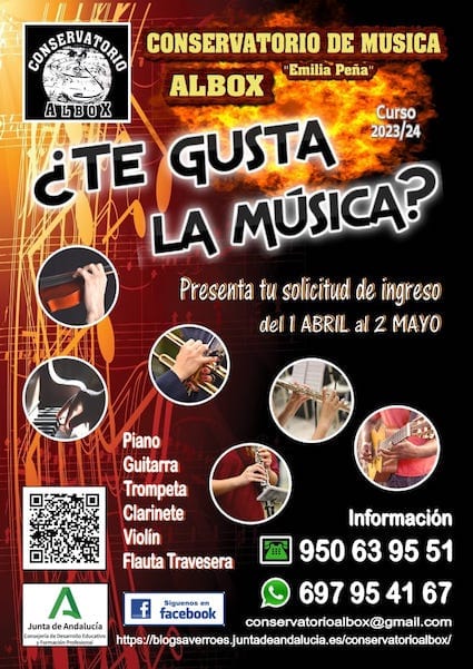 El Conservatorio de Música Emilia Peña de Albox mantiene abierto en este momento el plazo de solicitud de plaza para el próximo curso 2023/24. Trámite que no compromete a nada, pero que es imprescindible antes de la matrícula que se llevará a cabo el próximo mes de julio.
