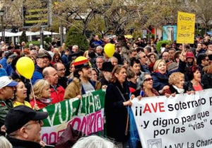 La Asociación de Amigos del Ferrocarril Comarca de Baza ha sido parte activa de la manifestación del 8 de Abril contra el aislamiento ferroviario, realizada en las calles de Granada. Con el grito de miles de personas bajo la lluvia “Granada 3, Baza 33 … años sin tren, ¡ya está bien!”, junto al despropósito que supone la ausencia de conexiones ferroviarias en Granada ciudad durante los tres últimos años, se ha denunciado la discriminación que se viene sufriendo durante más de tres décadas, tras el cierre de la línea férrea Guadix Baza Almanzora Lorca el 31 de Diciembre de 1984. Y es que la falta de infraestructuras ferroviarias y el cierre de la salida natural hacia el Levante peninsular es una de las losas más pesadas que está lastrando durante décadas el necesario desarrollo socioeconómico de toda la zona.