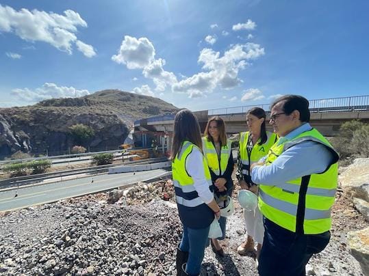 Rocío Díaz ha asistido también a una operación singular como el izado de una antigua estructura sobre la A-7 al objeto de aumentar el gálibo existente en medio metro para así alcanzar una altura de 5,5 metros. Esta intervención es un condicionante que había puesto el Ministerio de Transportes, Movilidad y Agenda Urbana para autorizar a la Junta de Andalucía la construcción del enlace entre ambas autovías, una, la del Almanzora, de titularidad autonómica y otra, la A-7, propiedad del Gobierno central.