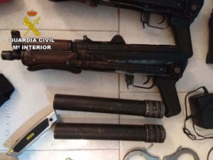 Se han intervenido 2 fusiles AK47 con culata retráctil sin marca ni número de fabricación; 12 cargadores aptos para estos fusiles; 2 silenciadores acoplables; 1 arma corta simulada; 1 silenciador para un arma calibre 10 mm; 2 cargadores, uno para un arma calibre 10mm y otro para un arma calibre 22mm; 5 grilletes metálicos y cerca de 800 cartuchos, tanto para los fusiles localizados como para alimentar varias armas de fuego diferentes. Todas las armas carecen de marca, modelo y punzones de fabricación.