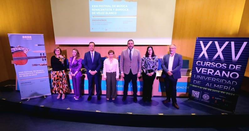 La vicerrectora se ha detenido en el lema de este año, ‘encuentros en la música y la cultura de la Edad Moderna’, abordándose “los encuentros, casuales o buscados, que generaron unas confluencias, integraciones o préstamos entre los distintos lenguajes culturales y artísticos”. Ha adelantado la estructura del programa, “once conciertos, cinco cursos de especialización en música y danza, así como seminario doctoral y una serie de conferencias diarias”. Ha unido todo ese contenido con los Cursos de Verano de la propia UAL, que este 2024 alcanzan su vigésimo quinta edición y que serán presentados el próximo día 30 de este mismo mes de abril, con 25 seminarios a los que pondrá el mejor broche posible, un año más, el Festival de Música Renacentista y Barroca de Vélez Blanco.