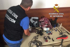 Esta detención es el resultado de la investigación llevada a cabo por la Guardia Civil desde finales del pasado mes de mayo, finalizada recientemente con la detención de una persona, presunto autor de un total de 8 robos con fuerza en las cosas, llevados a cabo en viviendas de veraneo de las localidades de Palomares y Vera Playa, de donde sustraía cualquier objeto susceptible de vender.