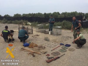 De igual forma los agentes intervienen dos carabinas y una pistola de aire comprimido que son depositadas en la intervención de armas de la Comandancia de la Guardia Civil de Almería.
