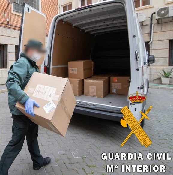 La Guardia Civil de Almería apoya a Subdelegación del Gobierno de España en Almería en el reparto de mascarillas.