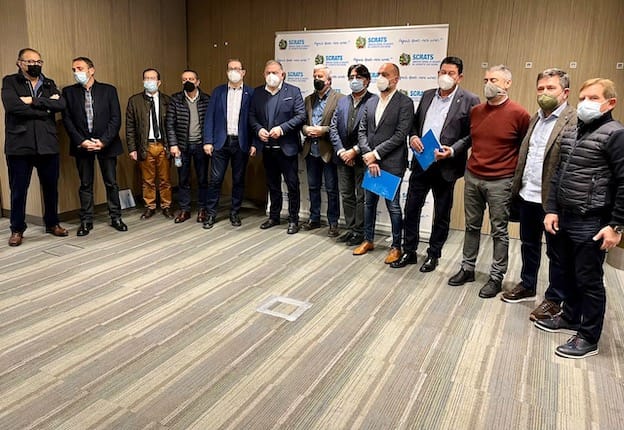 El portavoz de la Mesa del Agua de Almería, José Antonio Fernández Maldonado, y el presidente de Aguas del Almanzora y también representante de la Mesa del Agua, Fernando Rubio, han participado en la reunión del Círculo por el Agua, que representa los intereses de los regantes de Alicante, Murcia y Almería, que ha tenido lugar en la capital murciana.