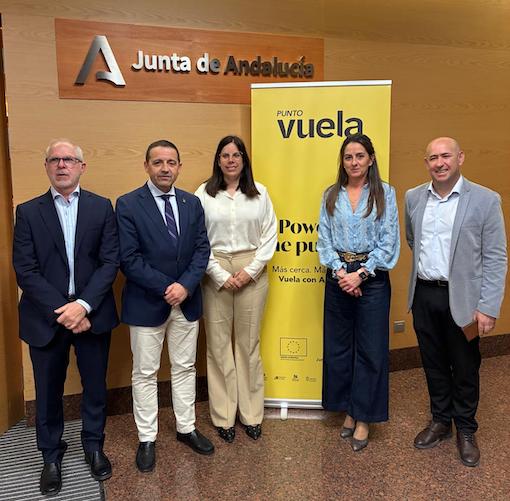 La delegada del Gobierno de la Junta de Andalucía en Almería, Aránzazu Martín, ha asistido, junto con el delegado territorial de la Consejería de Industria, Energía y Minas, Guillermo Casquet, a una jornada de coordinación de los Puntos Vuela de Almería, que ha tenido lugar este martes en el salón de actos del Edificio Andalucía Junta.