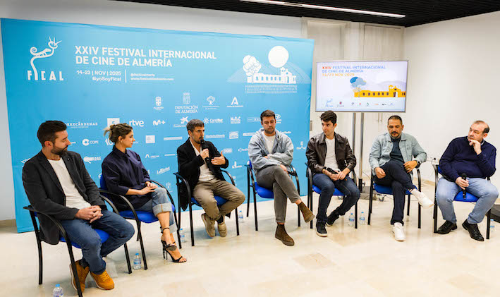 El director ha mantenido un encuentro con los periodistas arropado por una amplia representación del equipo. Los actores Javier Hernández, Vanessa Pámpano y Pablo Liñares, y los productores Miguel Abuja y Pablo Gregorio, de Timber Film. Junto a ellos, el director de FICAL, Enrique Iznaola.
