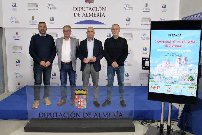 La Diputación de Almería ha presentado en el Pabellón Moisés Ruiz el campeonato de España individual de petanca que se celebrará en el municipio de Vélez Rubio del próximo 19 al 21 de abril. Este importante evento reunirá a cerca de mil personas en el municipio y sus alrededores.