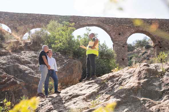 El municipio de Albanchez está reparando el Acueducto ‘Arcos de la Ramba del Pozo’ gracias a las inversiones de la Diputación Provincial de Almería. El vicepresidente de la Institución Provincial, Fernando Giménez, y el alcalde, Amador López, han visitado el entorno de esta joya patrimonial para comprobar ‘in situ’ las actuaciones de mejora que se están ejecutando con cargo a una asistencia económica directa.