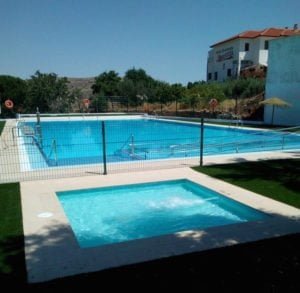 Las obras han consistido en una remodelación completa de la piscina, tanto en el vaso, con la incorporación de elementos para acceso adaptado y a la normativa vigente de medidas de seguridad, como en el exterior, con la sustitución del vallado perimetral y la instalación de césped artificial.