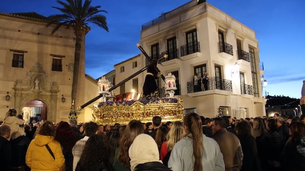 La de este viernes ha sido una noche fría, pero a pesar de las bajas temperaturas, los albojenes disfrutaban de la procesión de Los Moraos que este año estrenaba una nueva cruz para el Nazareno realizada por el imaginero sevillano Manuel Ramos Corona. Además, el Nazareno procesionó con nueva túnica y una nueva disposición en el paso que daba un aspecto al trono mucho más bonito.