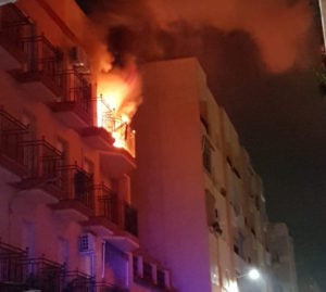 Un aparatoso incendio en la tercera planta de un bloque de pisos en el centro del municipio de Albox, se produjo la madrugada de este domingo.