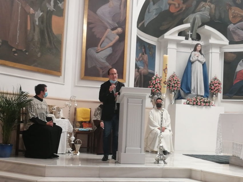 El presidente de la Junta Parroquial Beato Juan Ibáñez, Antonio Pardo Díaz, pronunció una vibrante acción de gracias que comenzó con las palabras: «Hoy es un domingo grande y alegre».