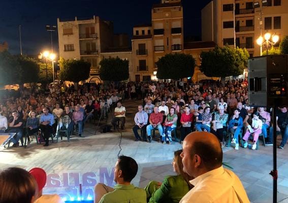 Las 600 sillas dispuestas por la organización se quedaron cortas para una multitud que llenó la plaza de La Loma para arropar a un equipo liderado por la médico María del Mar Alfonso.