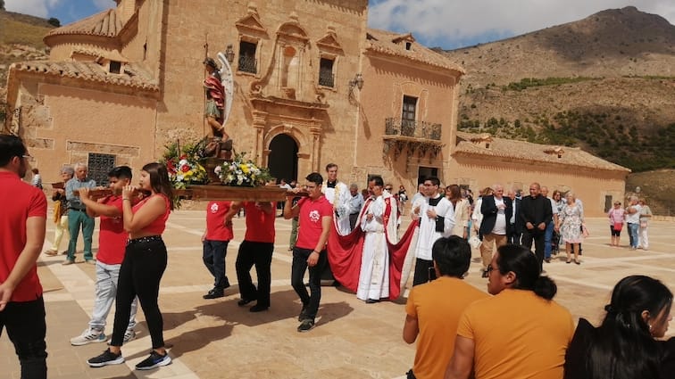 La mañana del domingo veinticinco de septiembre, más fresca que de costumbre, amaneció muy concurrida en el Santuario Diocesano del Saliente. Con la almendra prácticamente ya recogida, muchos agricultores enfilaron los caminos de la sierra de las Estancias para participar en la “Romería de San Miguel”. Se sumaron peregrinos bolivianos, ataviados con sus ropas folclóricas; así como deportistas y otros muchísimos peregrinos almerienses, murcianos, granadinos, malagueños y gerundenses. Acudían por motivos diversos, algunos para presentar a sus bebés o para pedir la bendición de sus nuevos vehículos. Todos, de una manera o de otra, para encomendarse a la Pequeñica y buscar el amparo del Angélico Defensor del Roel.