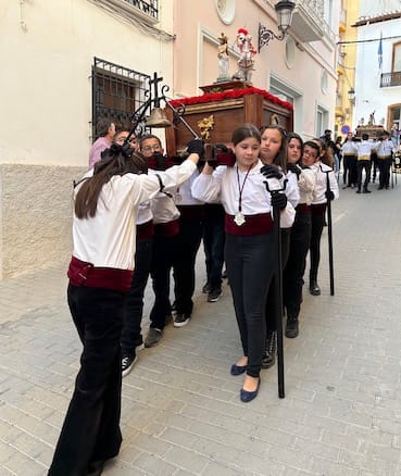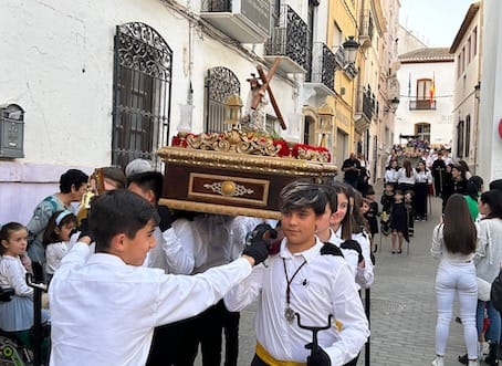 El municipio de Albox estrena su Semana Santa con la Cofradía Nuestra Señora de Los Dolores. Este viernes 22 de marzo, a las cinco de la tarde, realizaba su salida de la Iglesia de Santa María, el Paso infantil de ‘Los Negros’, y numerosos vecinos esperaban con alegría la llegada de este momento para disfrutar de nuevo de la devoción y el sentimiento que genera la Semana de Pasión.