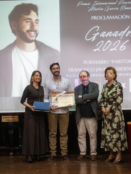 En un emotiva Gala celebrada en el Auditorio Federico García Lorca, donde el ganador de este año, Francisco Javier Cárdenas García, recogió este importante Premio, el más importante del mundo, en poesía joven de habla hispána, por su poemario Paritorio.