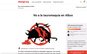 A través de la plataforma Change.org, y bajo el lema “no a la tauromaquia en Albox”, se han recogido más de 1000 firmas en solo 24 horas.