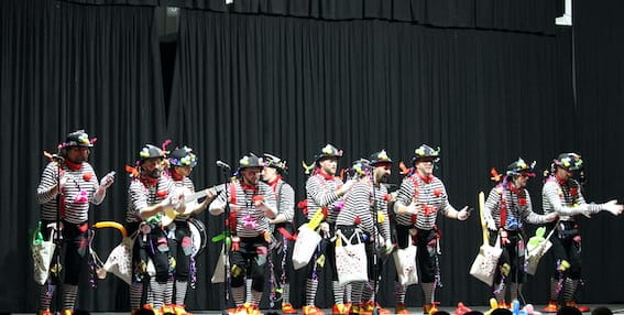La Chirigota del Jallullu de Totana, ganadora por segundo año consecutivo del Concurso nacional de Chirigotas ‘Ciudad de Torrevieja, caracterizada de mimos ‘Porque con tu sonrisa ya tengo bastante’ enganchó al público.