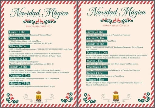 La Navidad es sin duda el mejor momento para que las familias del municipio disfruten de estas fechas tan señaladas, además de una oportunidad para el comercio y la hostelería de la localidad. Por eso el Ayuntamiento de Albox ha hecho un esfuerzo por realizar una programación que dinamice la vida cultural del municipio durante las próximas semanas.