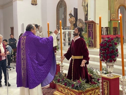A las 12 horas, Don Antonio José Villegas Romero, Párroco de Santa María y Consiliario del Paso Blanco, celebró la Eucaristía de Acción de Gracias y la Bendición de la sagrada imagen, a la que asistió la Jueza de Paz, doña María del Carmen García, y un nutrido grupo de hermanos.
