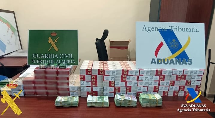 Funcionarios de Vigilancia Aduanera de la Agencia Tributaria y personal de la Guardia Civil, han intervenido en el puerto de Almería, 200.000 euros en efectivo y 890 cajetillas de tabaco sin precintas fiscales, que se encontraban ocultos en un autobús que viajaba en el ferry procedente de Nador (Marruecos), lo que motivó la detención del conductor del vehículo.