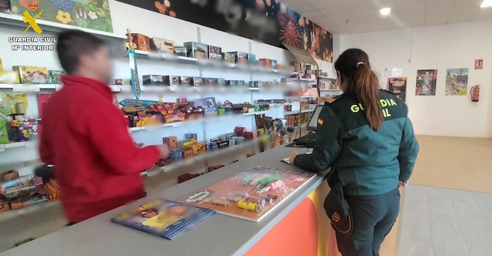 La Guardia Civil recuerda que la adquisición de artículos pirotécnicos debe realizarse exclusivamente en puntos de venta autorizados, conforme a la normativa vigente, ya que estos establecimientos cuentan con las condiciones adecuadas para la conservación de productos homologados, estando prohibida la venta ambulante.