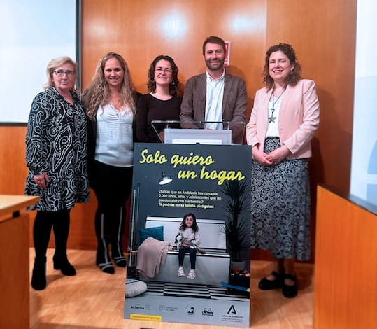 Así se ha dado a conocer en el día de ayer, esta campaña en el Salón de Actos de la Delegación Territorial de Almería. Los responsables de presentarla han sido Francisco González Bellido, delegado territorial de la Junta de Andalucía en Almería; Elena Sánchez, representante de APRAF-A; M.ª Carmen González, de SAAF Cruz Roja); Raquel Rivera, de la Asociación de familias ‘En Familia por Derecho’; y Victoria Rodríguez, familia acogedora.