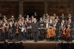 Siendo su segunda actuación en el Festival, Valery Gergiev ofreció un extraordinario espectáculo que invitó a conocer el mejor sinfonismo ruso, otorgando una mirada al centenario de la finalización de la I Guerra Mundial. Sobre el escenario se expusieron los dos pilares esenciales del género en el siglo XX; de Serguei Prokofiev se interpretó la Sinfonía Clásica y de Dmitri Shostakovich el Concierto para violín con el genial violinista armenio Sergey Khachatryan, como solista, y la Sinfonía núm. 12 «1917». El Palacio de Carlos V vibró anoche con una actuación sublime.