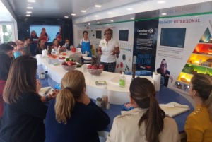 Durante la jornada se han impartido 8 Talleres Express, en el interior del nutribus, de la mano de Maite Pelayo, microbióloga y experta en seguridad alimentaria del Instituto Silestone y de Patricia Velasco, nutricionista de La Caravana de la Salud. Los empleados del grupo han podido apreciar, de primera mano, cómo Maite Pelayo y Patricia Velasco han elaborado una receta nutritiva y divertida con la que han aprendido consejos sobre alimentación e higiene en la cocina.