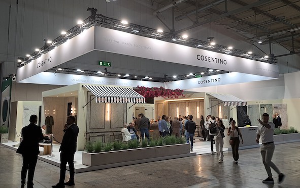 El espacio, diseñado bajo el concepto del ĒCLOS® Café, ya avanzado a principios de años en la feria KBIS de Orlando, se convirtió en punto de encuentro para multitud de profesionales de todo el mundo. Un espacio abierto de reunión que mostraba en diferentes aplicaciones los colores de la primera colección de ĒCLOS®. Con espectaculares ambientes de baño y galerías expositivas de tablas en gran formato, el stand también dio a conocer las últimas series de Silestone®, así como las más recientes novedades de la superficie ultracompacta Dekton®: Amazonik, Nomak o la futura colección Artik Nodes.