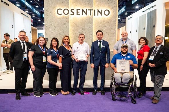 Finalmente, cabe reseñar que en el marco de la feria se produjo la entrega de un reconocimiento a Cosentino por parte de Homes For Our Troops (HFOT), organización sin ánimo de lucro que construye y dona casas personalizadas especialmente adaptadas para veteranos heridos en todo Estados Unidos. Un distintivo por los 20 años de compromiso y colaboración con HFOT, en la que Silestone® es proveedor de revestimientos para estas casas.