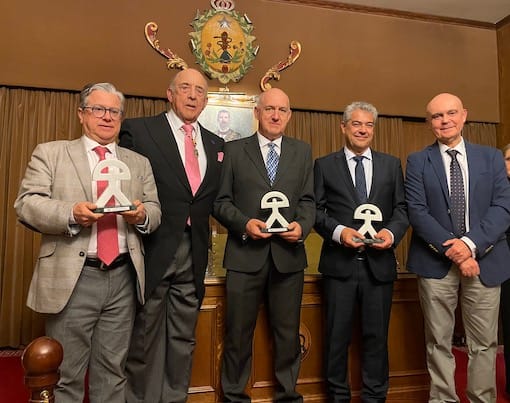 En la foto, de izquierda a derecha podemos ver a Santiago Alfonso (responsable de Comunicación y Marketing de la empresa en representación de Cosentino); el Dr. Alejandro Bonetti, Director del Aula Dieta Mediterránea; y los también premiados Gabriel Aguilera, Vicerrector de Sostenibilidad, Salud y Deportes de la UAL, y Carmelo Rodríguez, exrector de la UAL. En el acto también participó el almeriense Dr. Miguel Ángel Arráez, jefe de servicio de neurocirugía del Hospital Regional Universitario de Málaga.