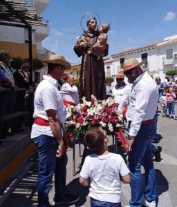 Acompañada de una decena de carrozas, La Milagrosa partió desde la capilla del Palacio del Almanzora a las nueve de la mañana para tener su primera parada bajo el puente de hierro de Cantoria, una construcción centenaria sobre el cauce del río Almanzora que es sin duda una de las señas de identidad de la localidad. Allí, organizado por el Ayuntamiento, decenas de vecinos esperaron a los romeros para ofrecerles un desayuno campestre y reponer fuerzas tras un primer tramo de cuatro kilómetros. Los dos kilómetros restantes se llevaron a cabo con vecinos de Almanzora y Cantoria, si bien el mayor número de participantes esperaba con San Antonio en las calles de la localidad, procesionado por vecinos que lo portaron a hombros hasta la entrada del pueblo a la espera de la imagen de la virgen para rendirle honores inclinando el paso ante La Milagrosa.
