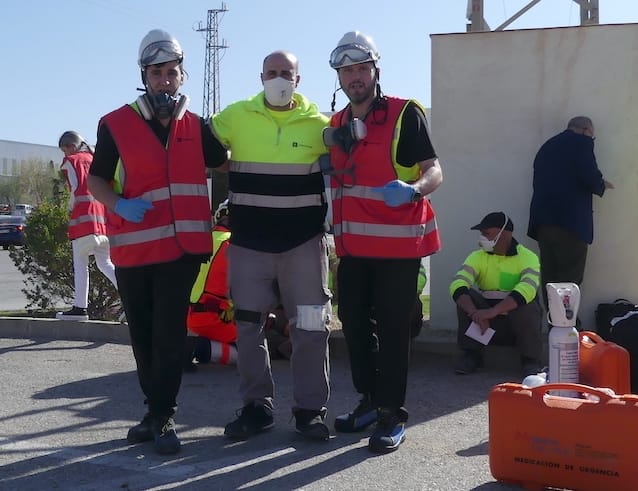El Grupo de Emergencias de Andalucía (GREA), paralelamente, ha contribuido en el ejercicio aportando capacidad técnica y logística para las funciones de coordinación a través del despliegue del Puesto de Mando Avanzado (PMA) y con el apoyo en las tareas de análisis y planificación previas en la entrada de la fábrica.
