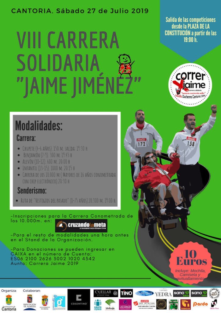 Un año más y con este van ocho, se llevará a cabo una carrera solidaria que recuerda la memoria de Jaime Jiménez, un cantoriano de adopción que durante años luchó contra una de esas enfermedades consideradas como «raras». Jaime a los cuatro años de edad, fue detectado con distrofia muscular de Duchenne.