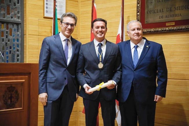 El presidente de la Diputación de Almería, Javier A. García, ha sido nombrado Miembro de Honor del Colegio de Médicos por su vinculación e implicación con este colectivo. El presidente del Colegio, Francisco José Martínez Amo, ha sido el encargado de entregarle la medalla y el diploma que le acredita con este prestigioso reconocimiento.