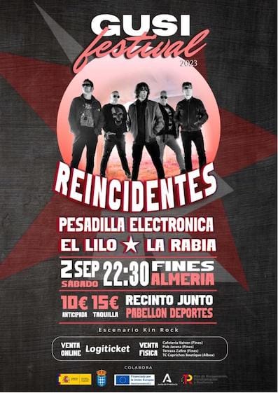 El sábado día 2 de septiembre, en el escenario Kin Rock, los amantes de la música rock podrán vibrar con las actuaciones de Pesadilla Electrónica, El Lilo, La Rabia y la actuación estelar de la banda Reincidentes.