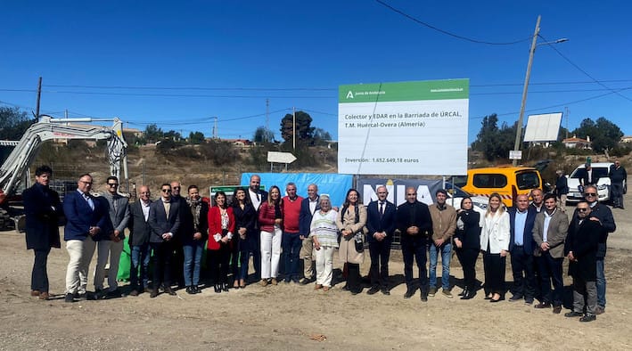 La consejera de Agricultura, Pesca, Agua y Desarrollo Rural, Carmen Crespo, ha colocado la primera piedra de los colectores y la nueva Estación Depuradora de Aguas Residuales (EDAR) de Úrcal junto al alcalde de la localidad almeriense de Huércal-Overa, Domingo Fernández. Carmen Crespo ha destacado que “esta actuación contribuye, por un lado, a la posibilidad de sumar, en el futuro, aguas regeneradas para el levante almeriense; y por otro lado, a alcanzar ese objetivo común que tenemos las administraciones de alcanzar el vertido cero”.