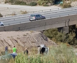 Dos vehículos que circulaban en la misma dirección han colisionado la mañana de este jueves en la carretera de las canteras, en el puente que une las localidades de Macael y Olula del Río.