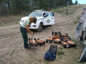 Agentes de Medio Ambiente de la Junta decomisaron durante el pasado fin de semana 133 kilos de níscalos que habían sido recolectados ilegalmente en el monte público ‘El Conde’, en el término municipal de Bacares. La actuación fue realizada por el dispositivo especial de vigilancia y control puesto en marcha por la Delegación de Medio Ambiente y Ordenación del Territorio para evitar la recogida incontrolada y abusiva de setas en las sierras de la Almería.