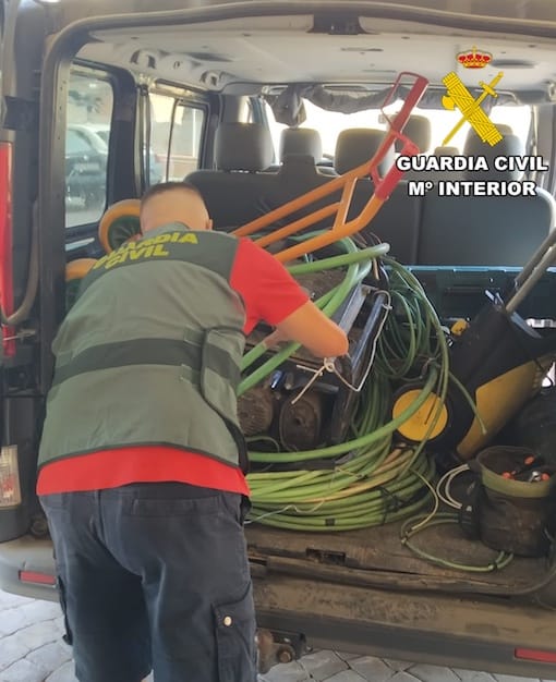 La Guardia Civil inició la investigación a las 8 de la mañana del pasado 1 de septiembre, cuando tuvo conocimiento, tras la denuncia presentada, de la comisión de un robo con fuerza en un almacén de obras y servicios del Ayuntamiento de Cuevas del Almanzora, ubicado dentro de un recinto perteneciente al consistorio en un polígono industrial de la citada localidad.