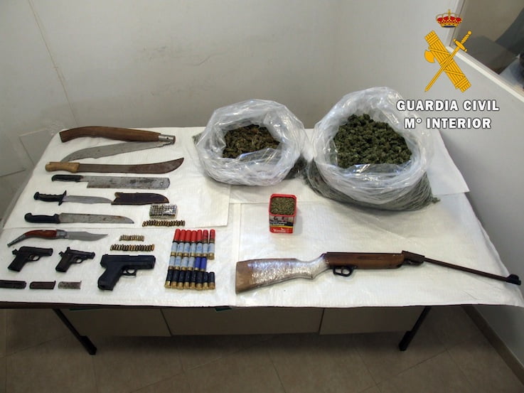 En la fase final de la investigación los agentes de la Guardia Civil identifican a los autores y realizan los registros correspondientes en sus domicilios, tras ser autorizados por la autoridad judicial, localizando varias pistolas preparadas para hacer fuego, munición de pistola y de escopeta y numerosas armas blancas de grandes dimensiones.