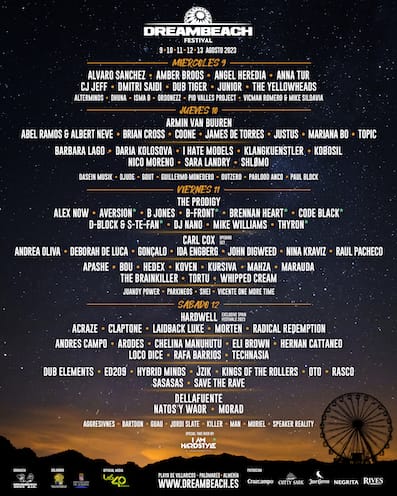El cartel de artistas de la 9ª edición apuesta tanto por grandes nombres internacionales, pero también dando un espacio de relevancia a la escena nacional y local, en una nueva edición del festival del verano, Dreambeach 2023. Abonos disponibles en www.dreambeach.es