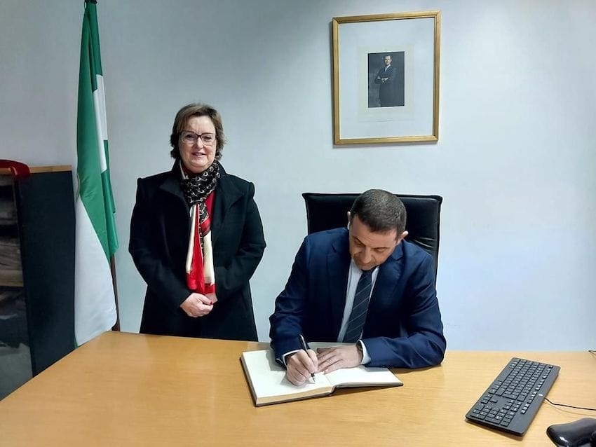 El delegado territorial de Economía, Hacienda, Fondos Europeos y de Política Industrial y Energía, Guillermo Casquet, ha realizado una visita al Ayuntamiento de Urrácal, donde ha sido recibido por su alcaldesa, Emilia Mateo. Un encuentro en el que el delegado de la Junta de Andalucía ha firmado en el libro de honor del consistorio y han mantenido un encuentro para analizar los distintos tipos de ayudas que pueden solicitar para mejorar la situación del municipio.