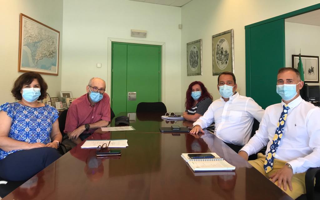 El delgado territorial de Educación y Deporte de la Junta en Almería, Antonio Jiménez Rosales, junto con la jefa del servicio de Planificación y Escolarización, Maribel Fernández, y la jefa de Personal y Recursos Humanos de la Delegación de Educación, M.ª del Carmen Martínez, se han reunido hoy con el director del IES Juan Rubio Ortiz de Macael, Manuel Martínez, y con el responsable de Recursos Humanos de la empresa Cosentino, Francisco Robles, para abordar distintas cuestiones sobre la Formación en Centros de Trabajo (FCT) del alumnado de los ciclos de Formación Profesional del IES Juan Rubio Ortiz.