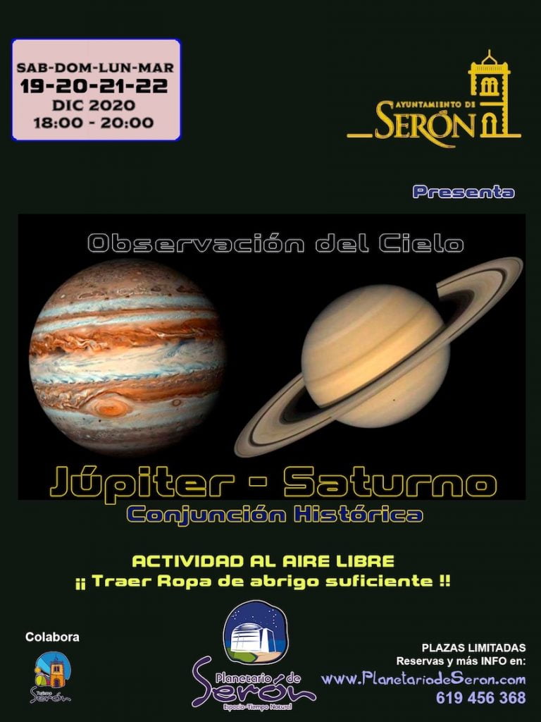 “Desde hace meses los dos gigantes del Sistema Solar (Júpiter y Saturno), se vienen aproximando poco a poco en el cielo, hasta el punto que debido a su proximidad su belleza se realza; la mirada se desvía hacia ellos sin quererlo por lo llamativo y atractivo del fenómeno. A esto se le llama conjunción de planetas. Pero su acercamiento será mayor hasta el punto que no podremos distinguir que son dos a simple vista. Y es que esta conjunción entre Júpiter y Saturno es la más favorable en siglos, y sin duda pasará a la historia, formando parte de las Conjunciones Históricas entre planetas”, explica Raúl Martínez morales, astrofísico y responsable del Planetario.