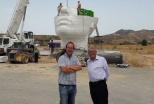El subdelegado del Gobierno en Almería, Andrés García Lorca, y el reconocido pintor almeriense, Andrés García Ibáñez, han visitado el estado actual de la escultura diseñada por el artista Antonio López “La mujer del Almanzora” que se está instalando junto al museo Casa Ibáñez y al recientemente terminado museo ‘Pérez Siquier’ en el municipio de Olula del Río.