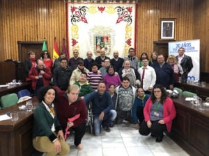 El Ayuntamiento de Huércal-Overa, ha celebrado la mañana de este jueves, una sesión especial de Pleno con motivo del Día Internacional de las personas con Discapacidad, que se conmemora el próximo lunes 3 de diciembre, una fecha que desde el Consistorio junto al Centro ocupacional Virgen del Río (gestionado por la Federación Almeriense de Personas con Discapacidad, FAAM), la Asociación de Personas con Discapacidad Virgen del Río, la ONCE y el Aula Específica del IES Cura Valera no quieren pasar por alto. Así hoy los usuarios y socios de las entidades mencionadas han trasladado sus propuestas al Alcalde, Domingo Fernández, en la sesión en la que ha estado acompañado del concejal de Bienestar Social, Emilio Pérez, el edil de Deportes, Alonso Mena y el presidente de FAAM Valentín Sola.