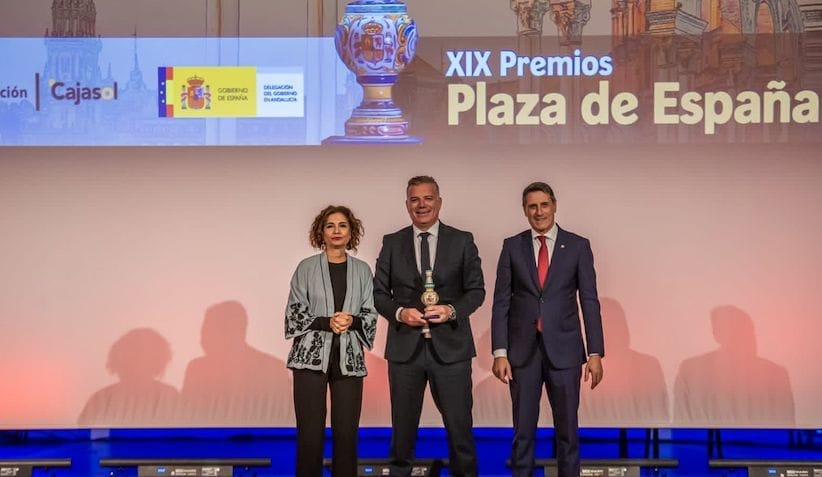 La vicepresidenta cuarta y Ministra de Hacienda y Función Pública, María Jesús Montero, acompañada por el Delegado del Gobierno de España en Andalucía, Pedro Fernández, hizo entrega de este galardón que concede anualmente la Delegación del Gobierno de Andalucía a Don Juan Manuel Reche Fernández, presidente y CEO de Grupo Reche Fernández, empresario de Tíjola.